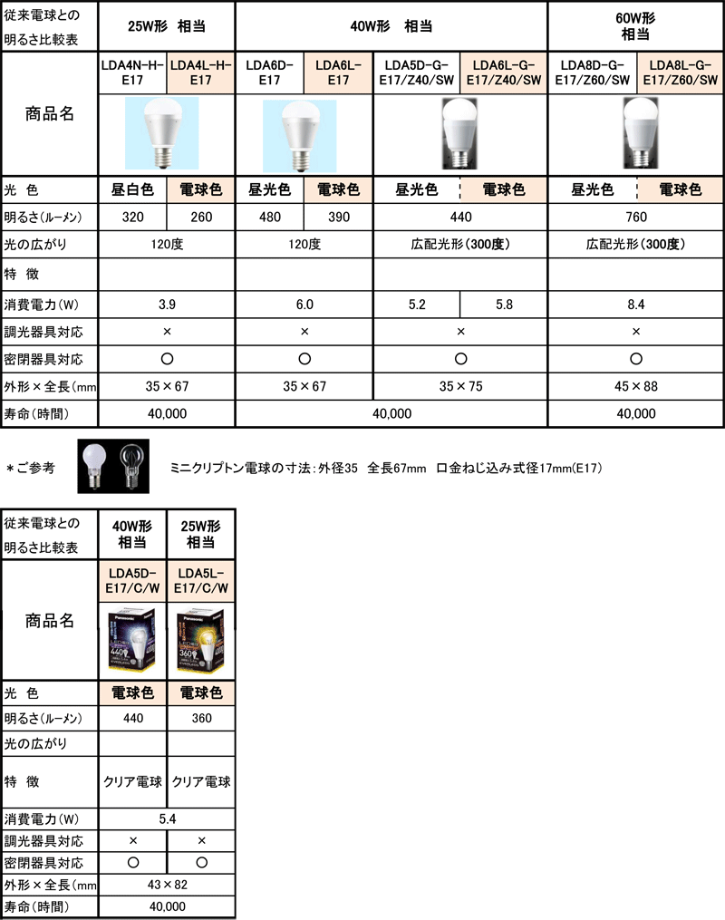 ミニクリプトン球形 40W相当の明るさ ガラス透明