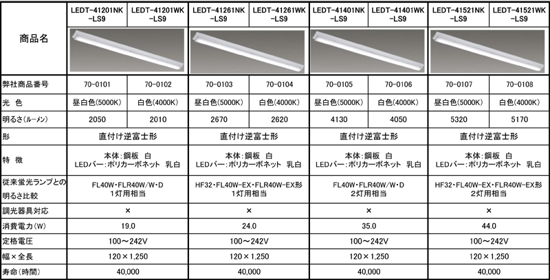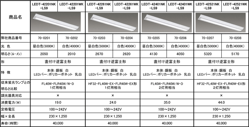 直管蛍光灯40Wタイプ「直付け逆富士形・幅120mm/230mm」