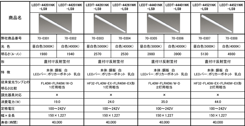 直管蛍光灯40Wタイプ「直付け反射笠付」 商品一覧