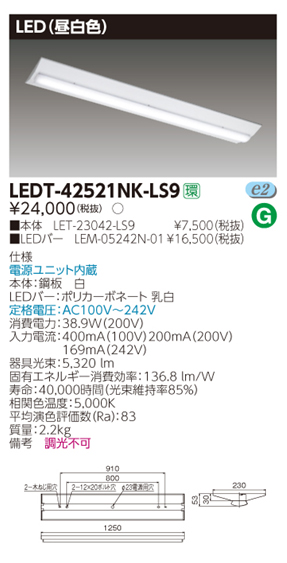 直管蛍光灯40Wタイプ「直付けトラフ形」