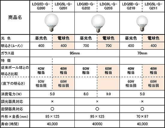 ボール電球(口金:ねじ式 径26mm) 商品一覧